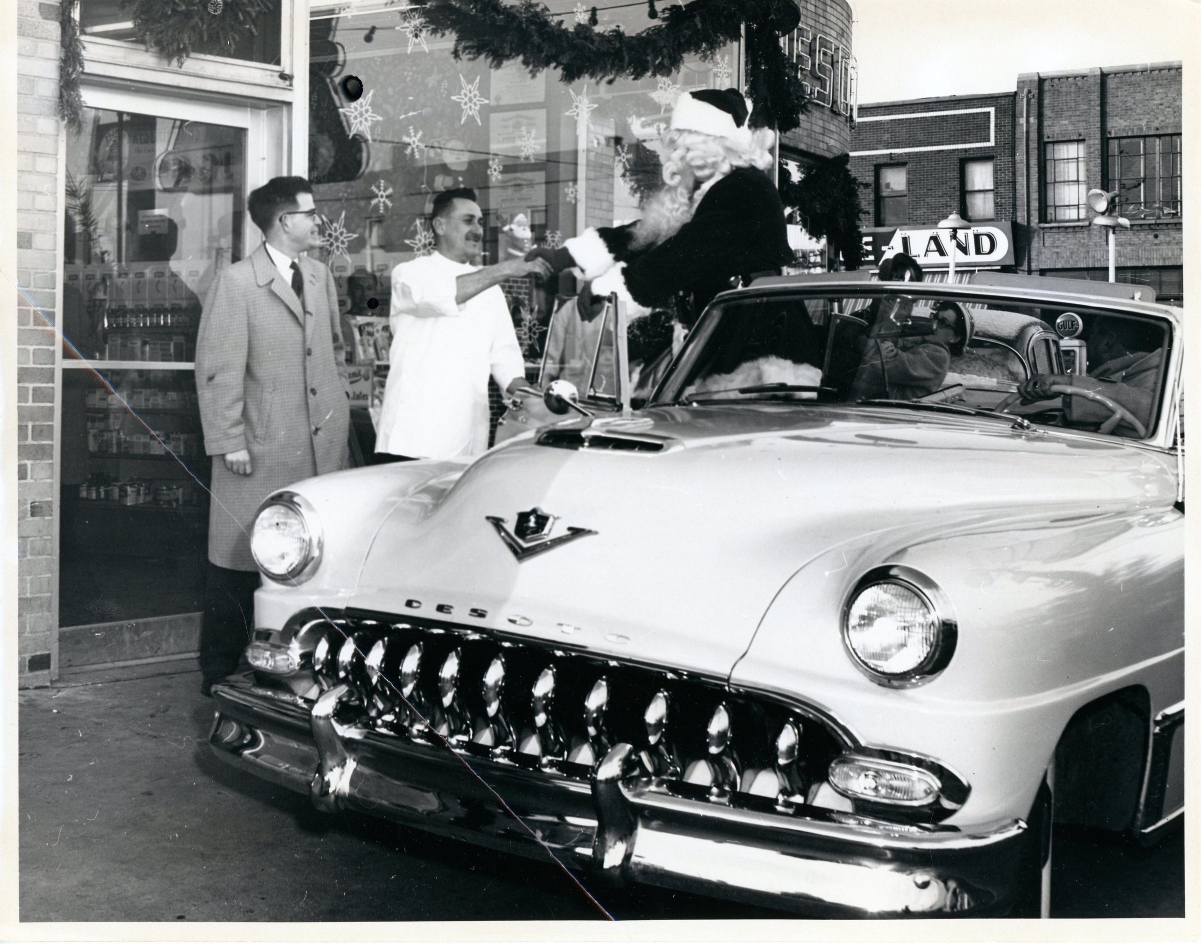 Milt Humphries, Jack O'Brien, Santa (Floyd Thetford). SE corner of Mich and Washington