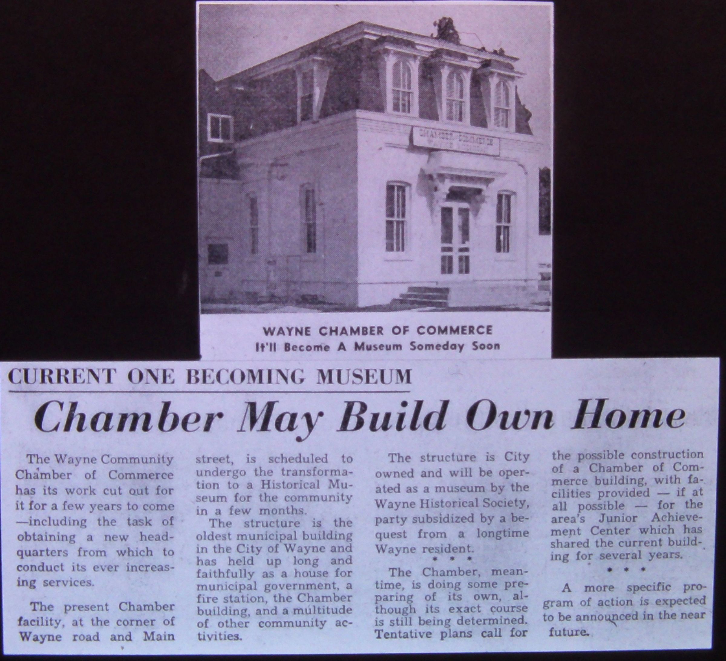 1961 article about chamber moving