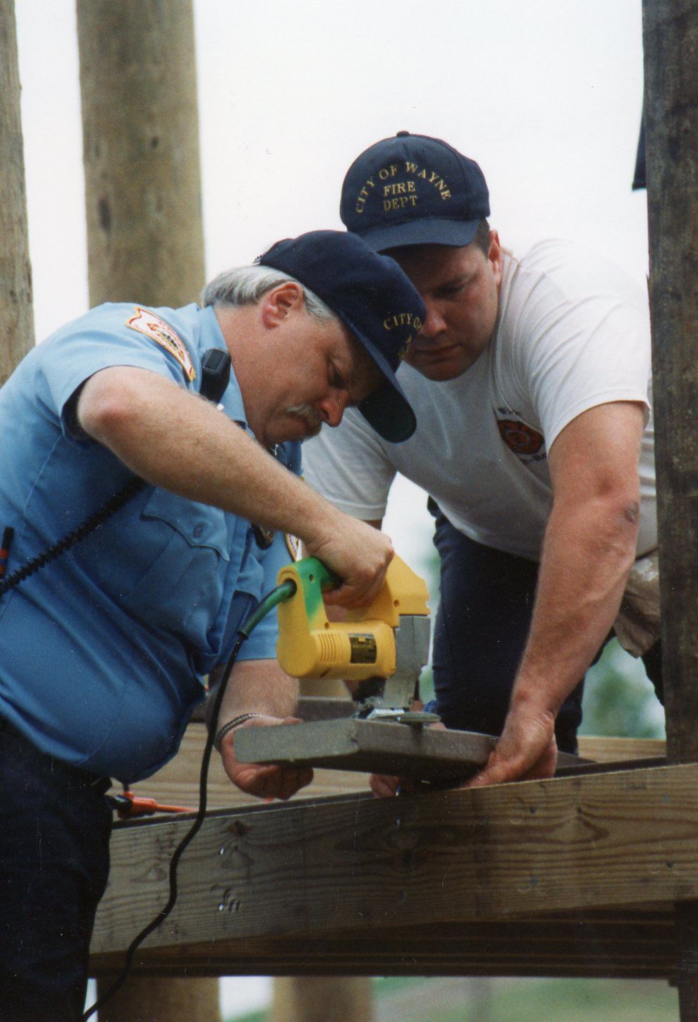 Firemen Greashover and Chapman building play structure