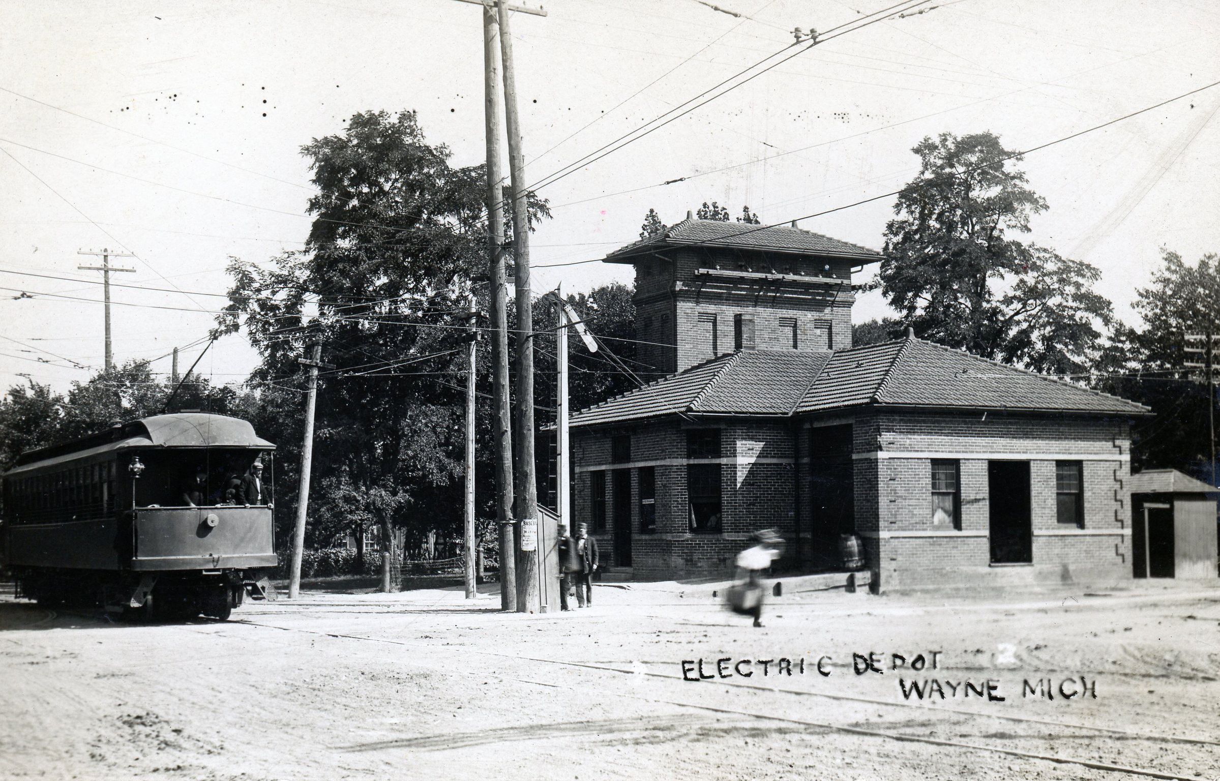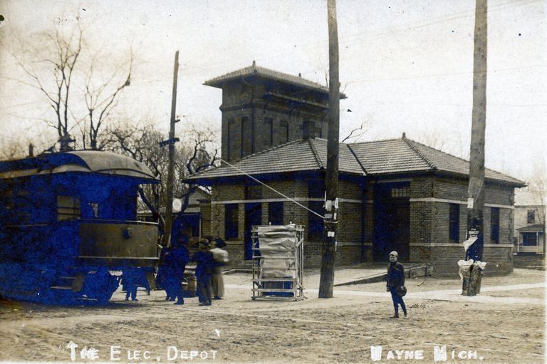 DUR Depot and waiting room. SE corner of Michigan and Wayne Roads. Pictured before the large powerplant was added.
