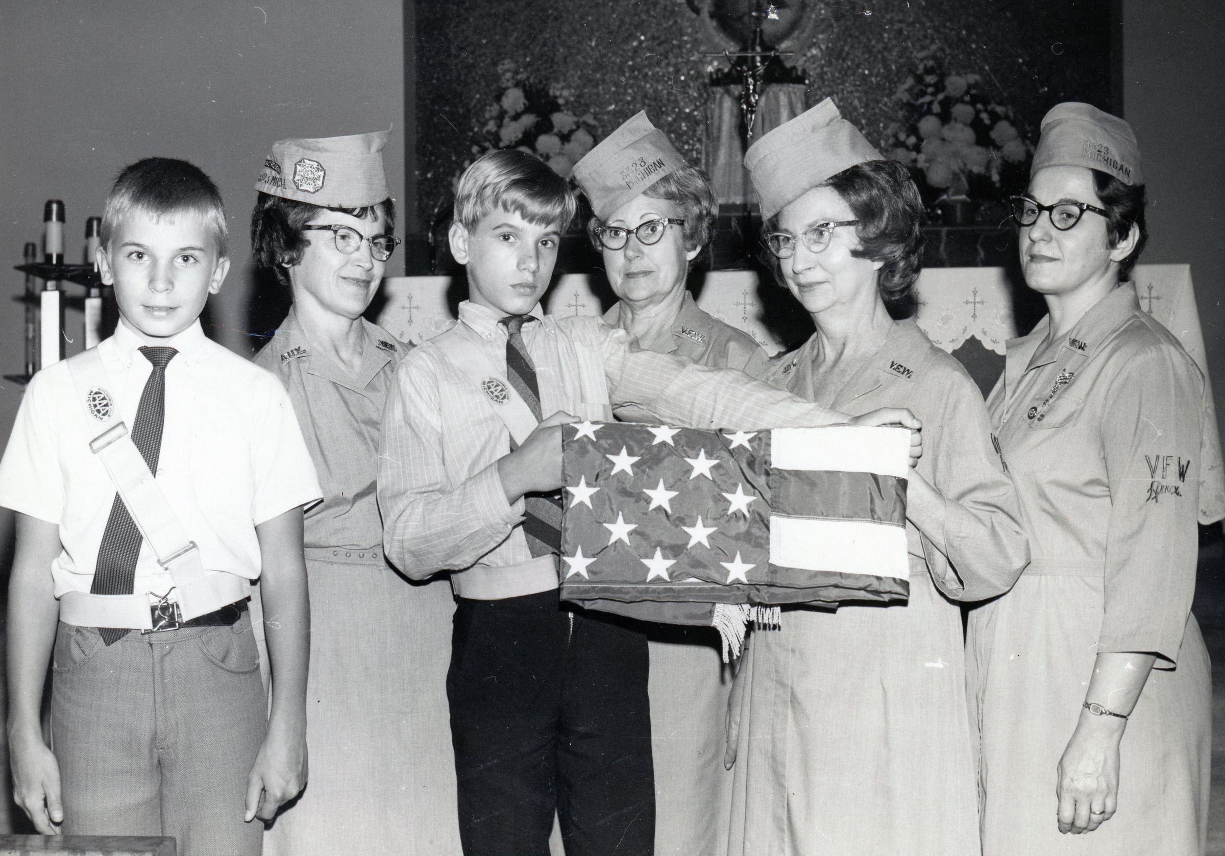 VFW Womens Auxilliary presenting new flags to St. Marys Church.
