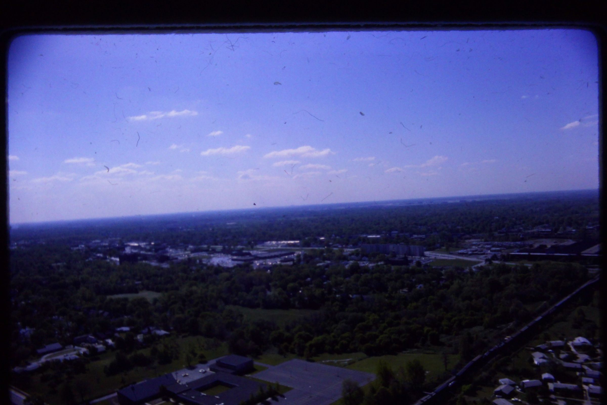 Aerial over Glenwood Road and the RR tracks, looking SE. 1977. 36125 Glenwood at bottom left.Cataloged By