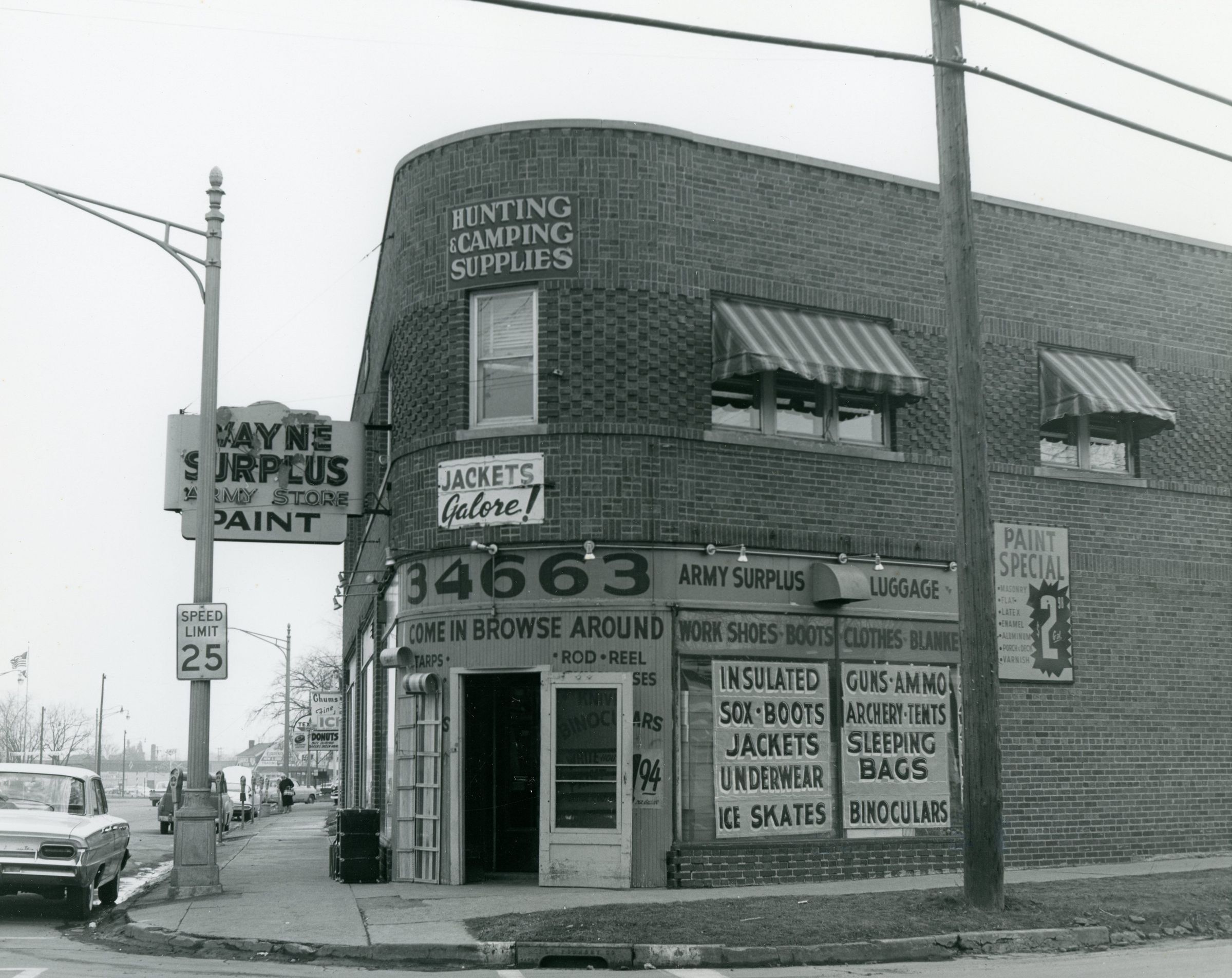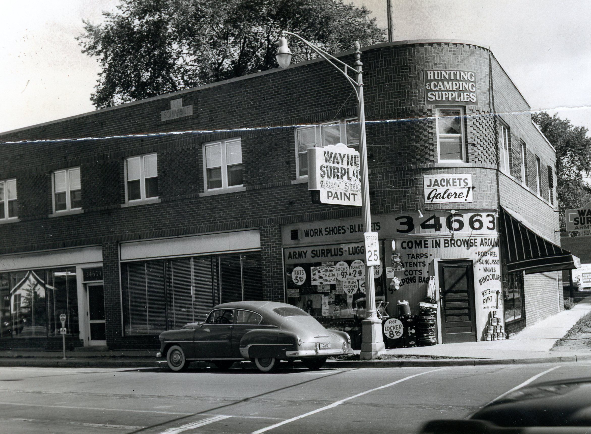 Wayne Surplus and Paint in the Schiable or Walker building on South East Corner of Michigan Ave and 2nd Street. Torn down for Urban Renewal.Cataloged By