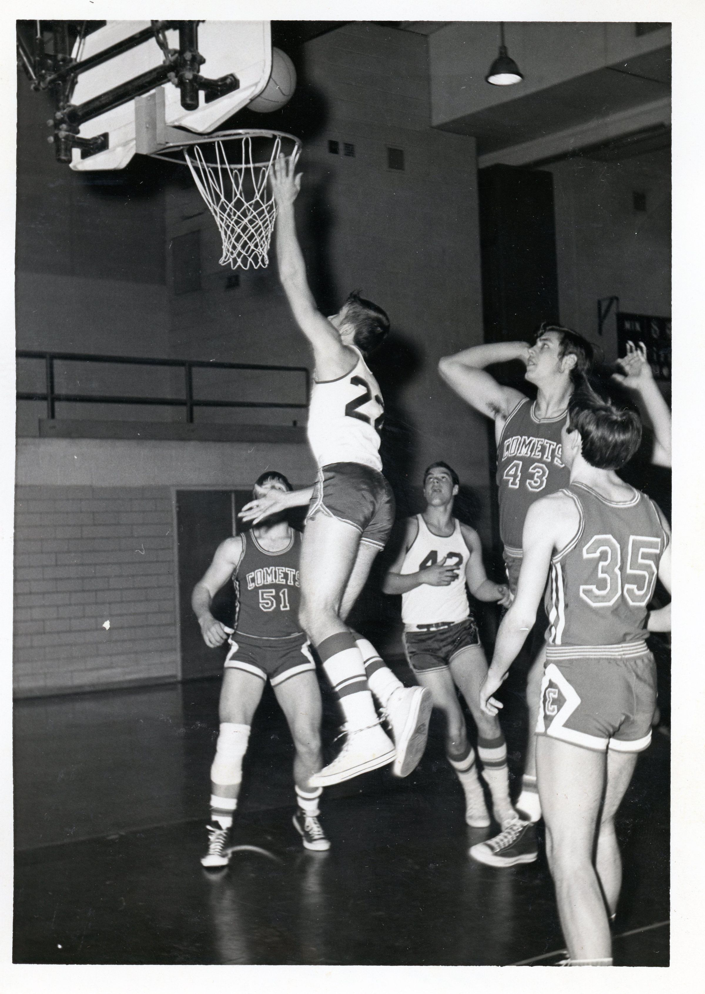Boys Basketball. #22 is Jim Guenther. Archambalt watches