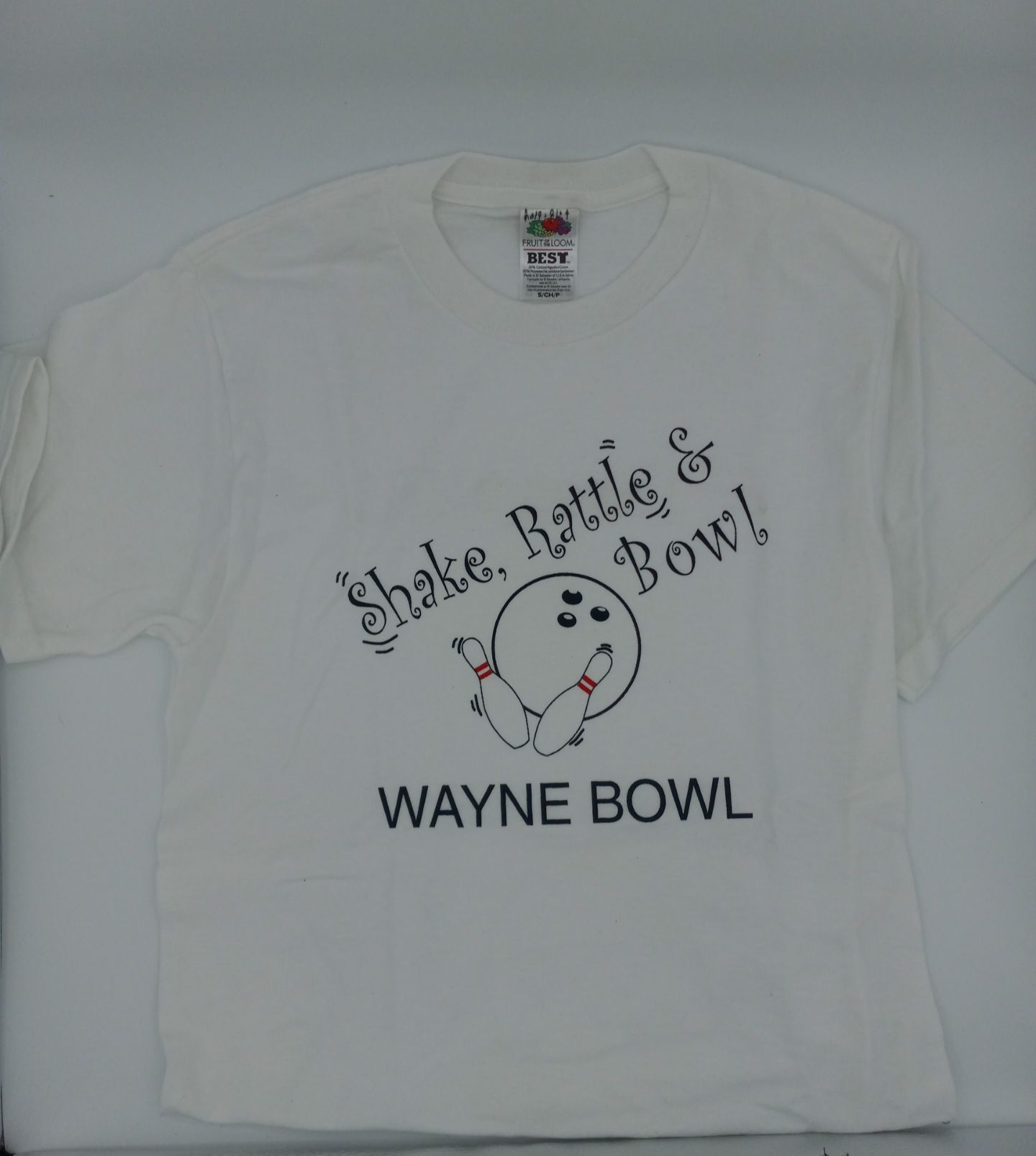 Size small Wayne bowl T-Shirt, donated by the Wayne Historic Village via Ryan Eberhart.