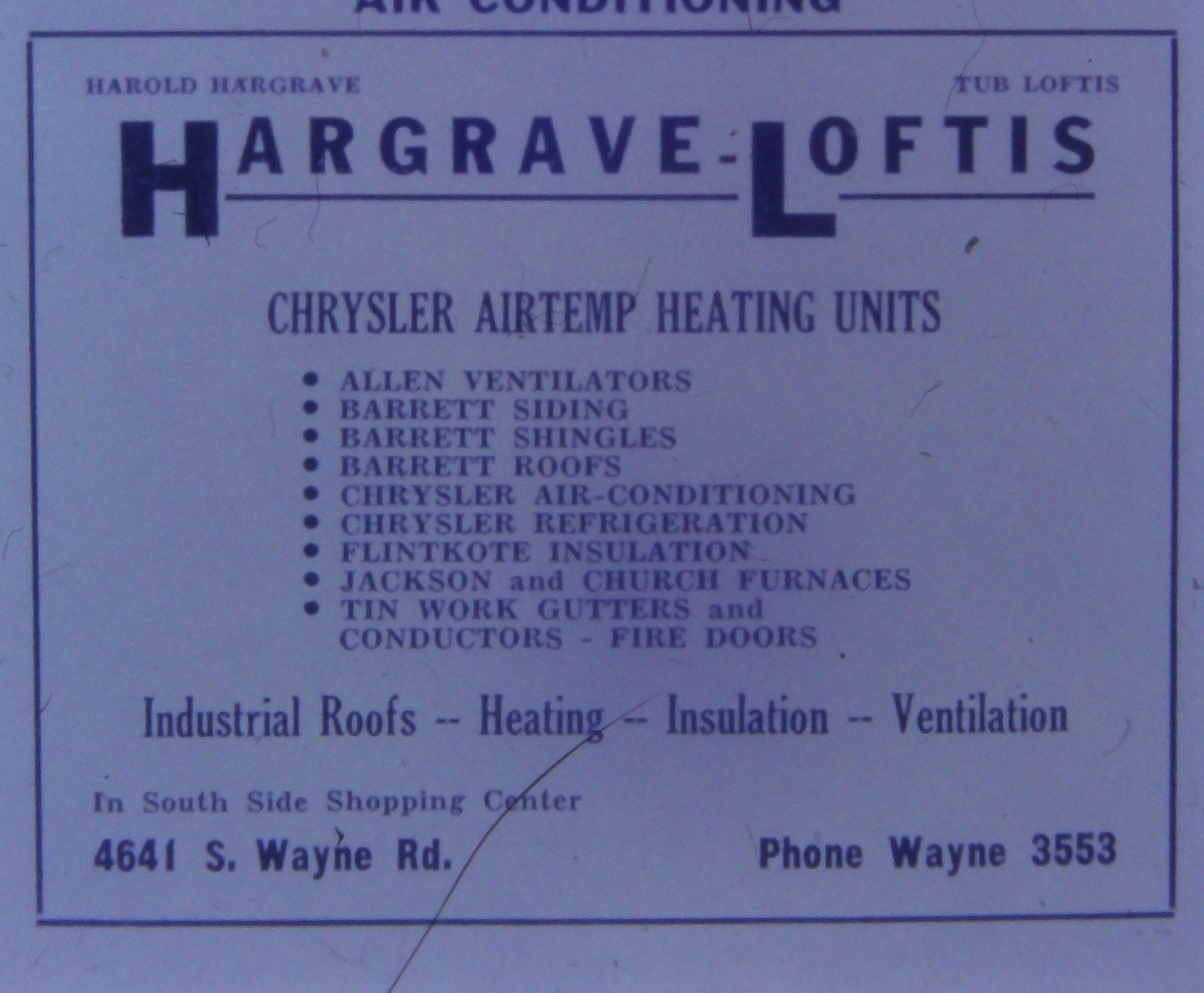 4641 S. Wayne Road - Hargrave Loftis Heating, ventilation, siding, shingles, insulation. Harold Hargrave, Tub LoftisCataloged By