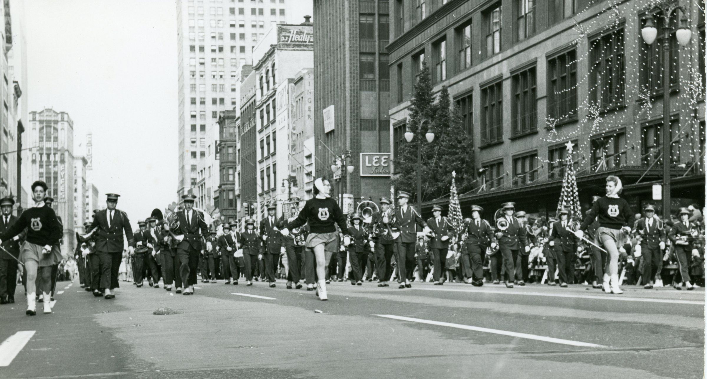 Band marching in Detroit Christmas parade