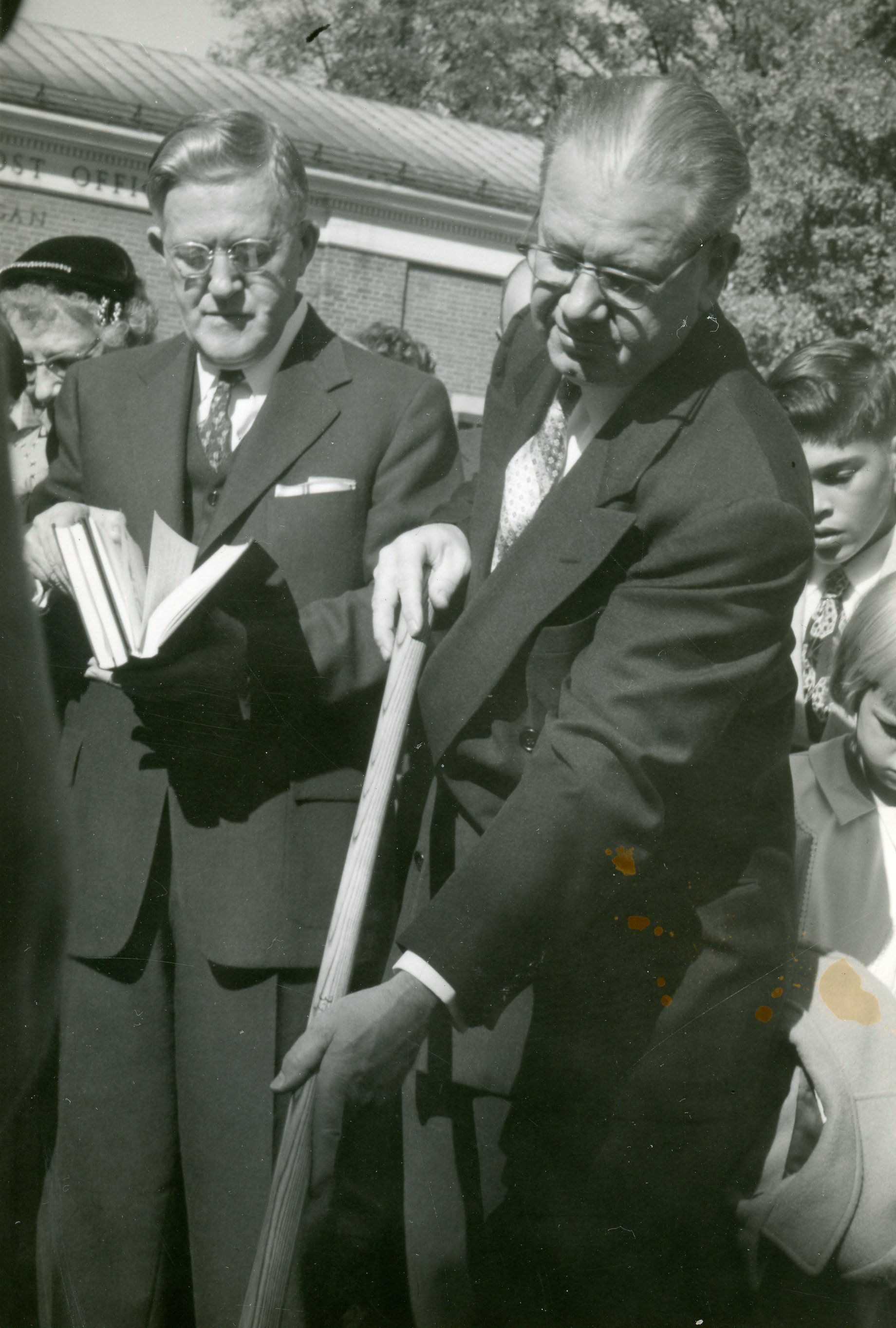 Bishop Reid with shovel