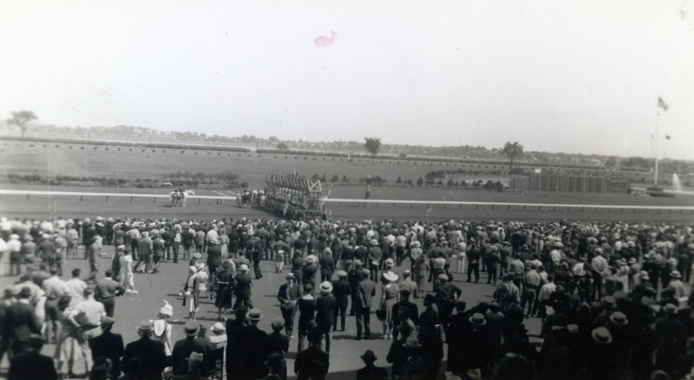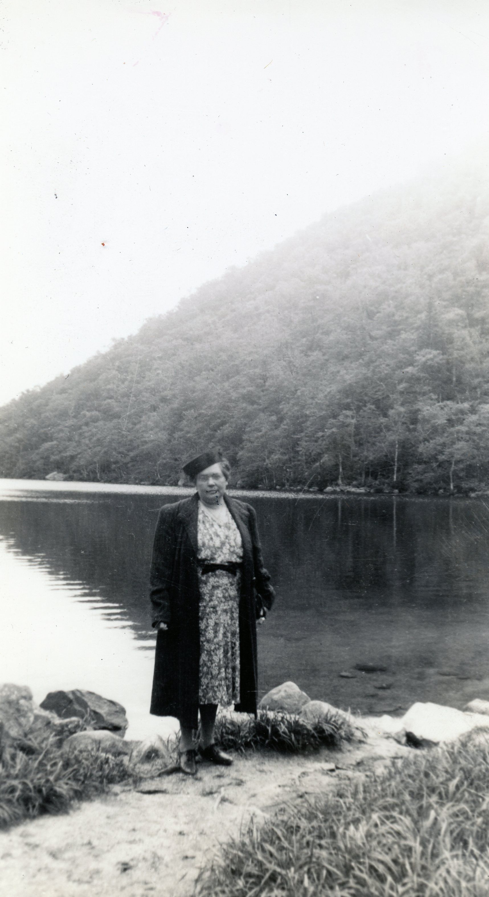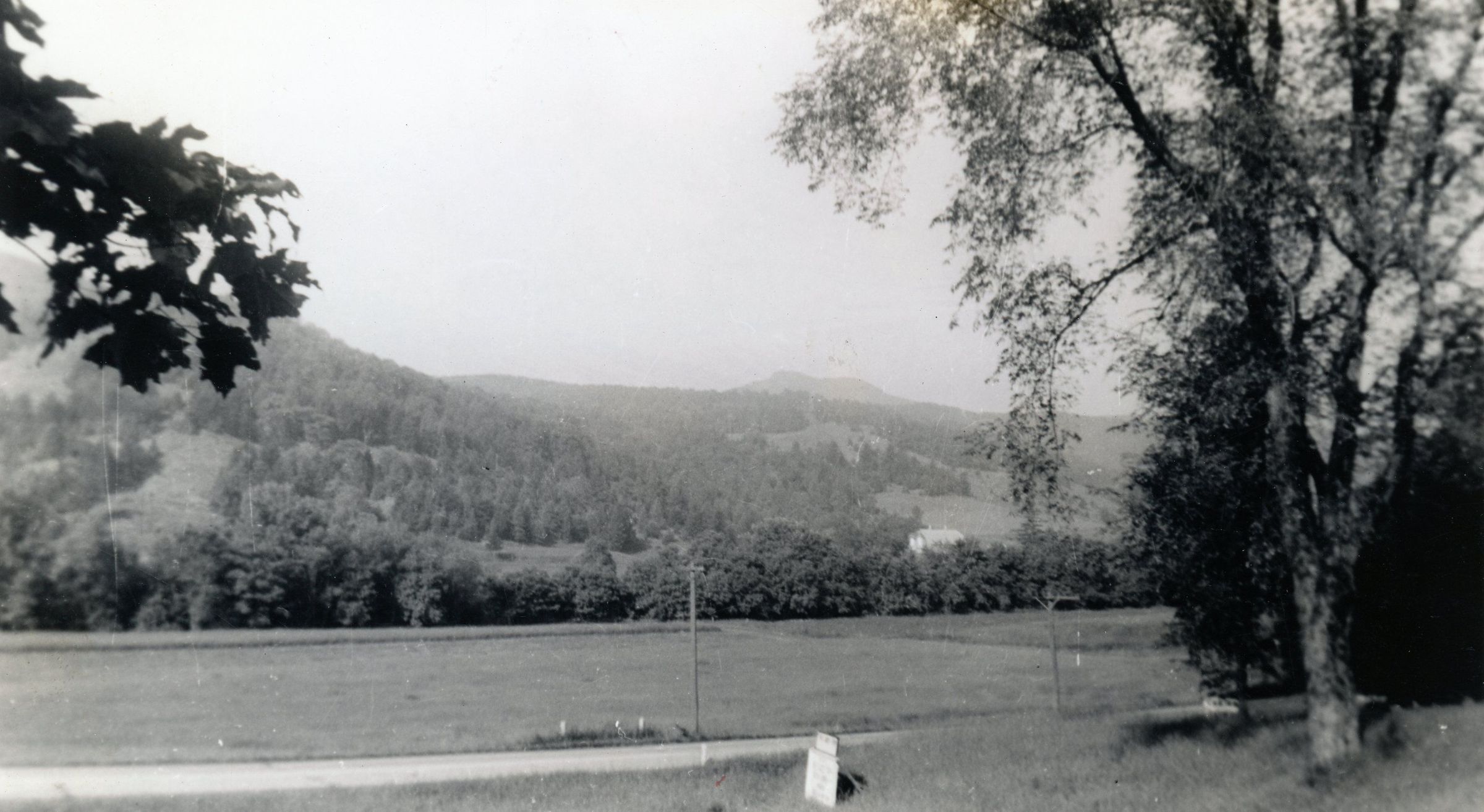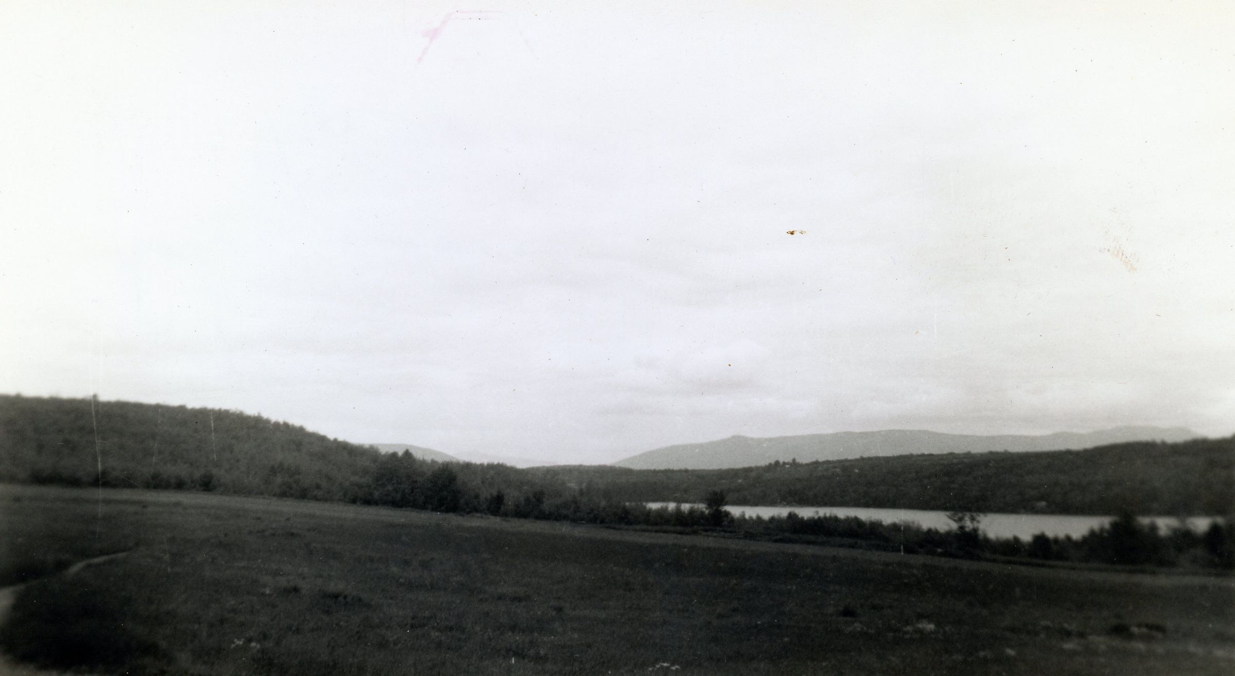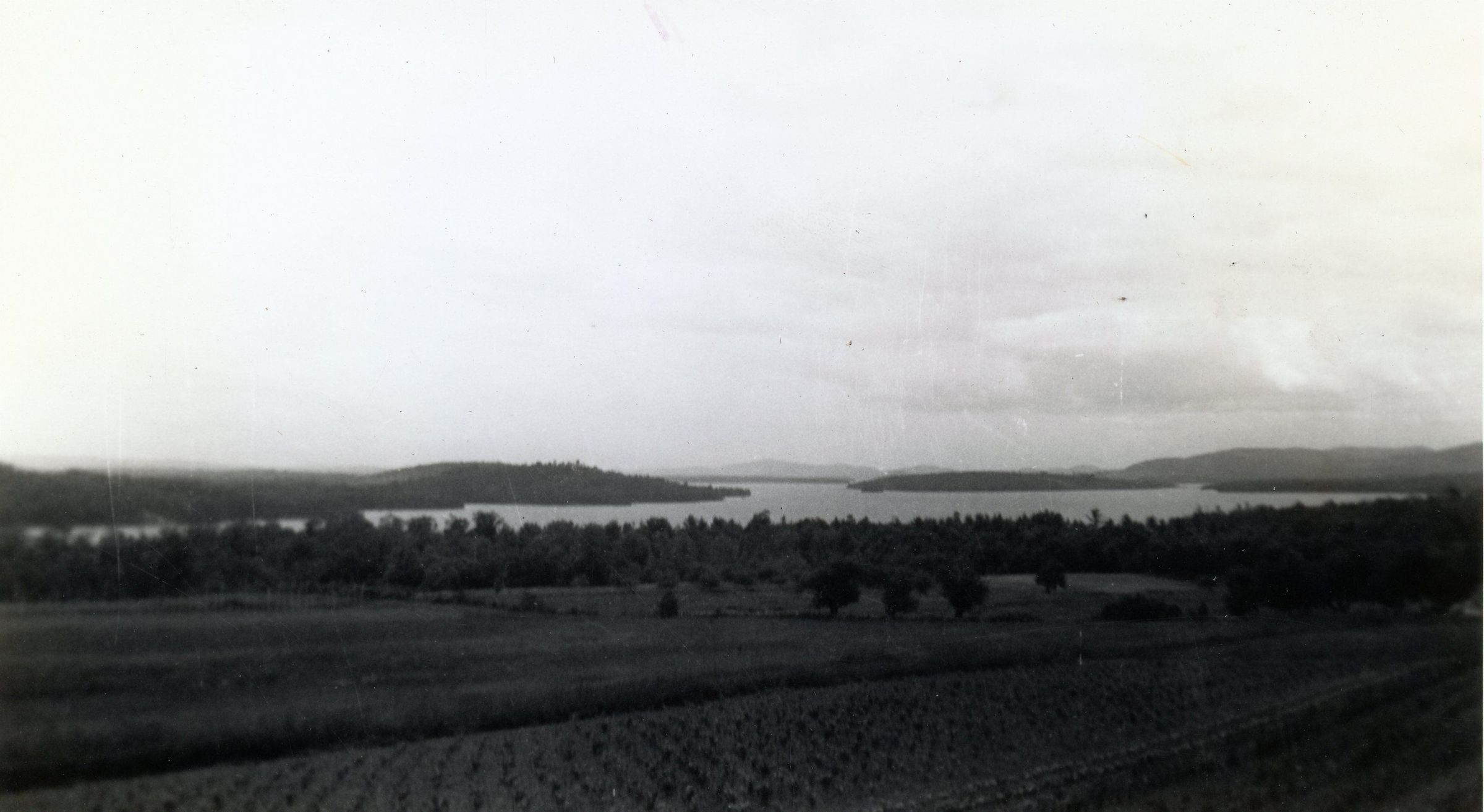 A field and body of water.