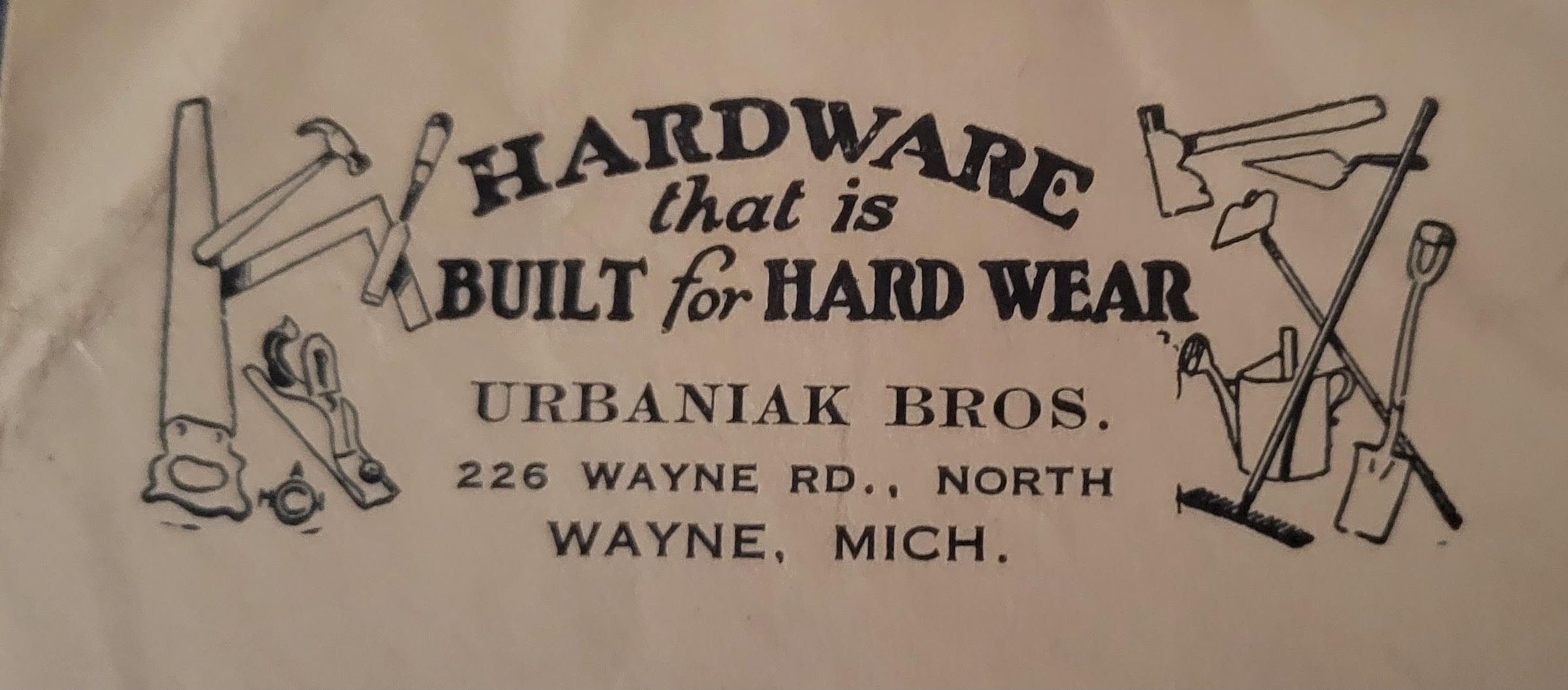 Urbaniak Hardware, mid 1920s. Exact location unknown, just that it was on Wayne Road. Possibly near Ford road and Wayne Road where Urbaniaks had property. Photo scans courtesy of Lawrence Urbaniak.Cataloged By