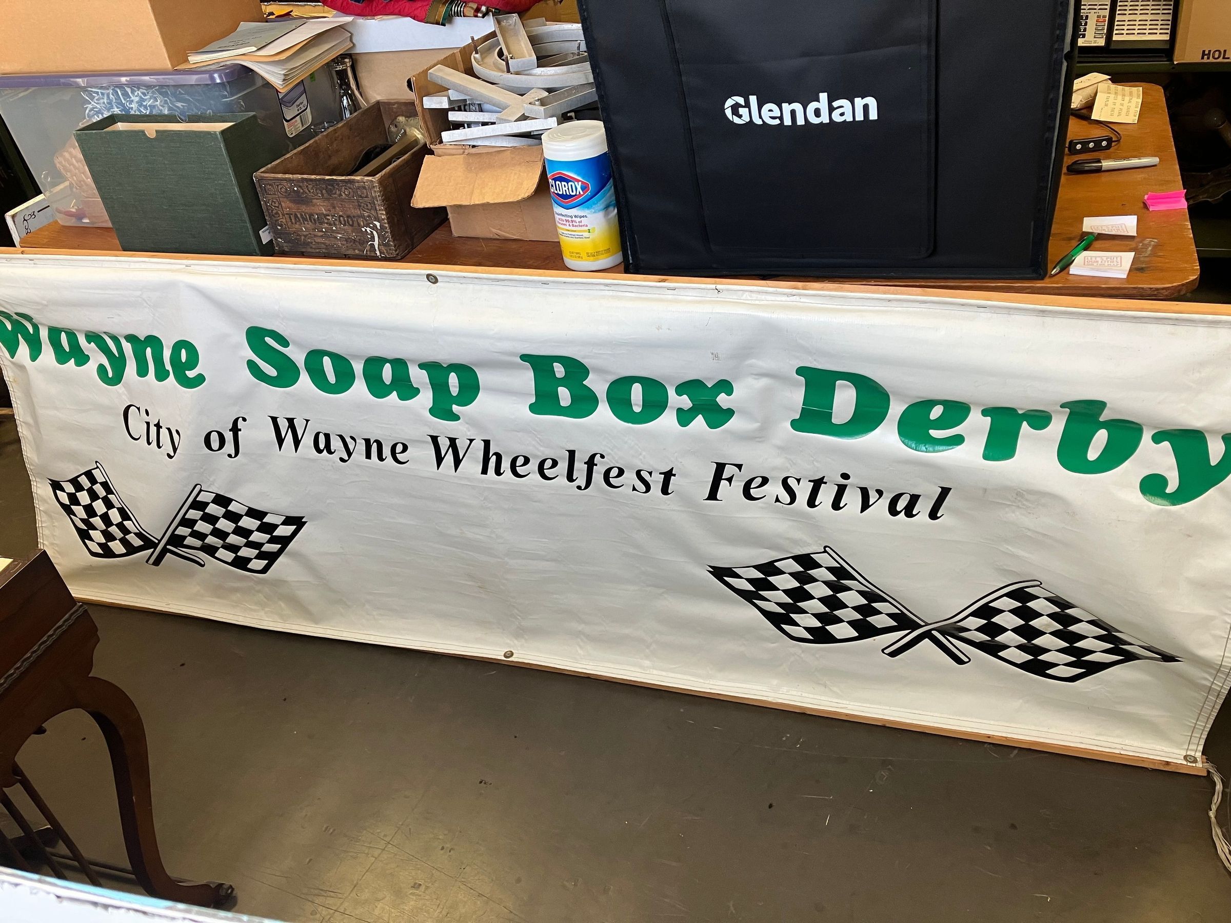 Vinyl banner from Wayne soap box derby, Wayne wheel fest.