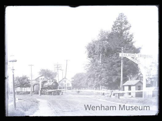 Landscape with Boston & Maine train heading east at Hamilton & Wehnam Depot, So. Hamilton, Atlantic type locomotive # 824Collection