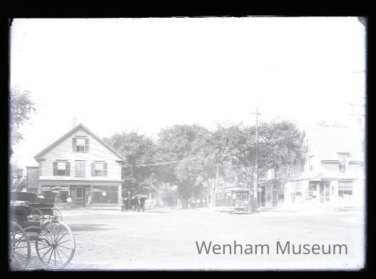 Landscape, So. Hamilton Center with stores, electric streetcar, #3023 and Boston & Lynn Station