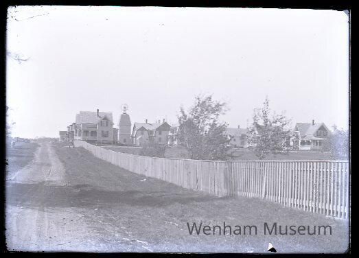 Landscape with view up Linden St. from Main St., showing houses on Willow St., houses are in S. Hamilton, (531a)