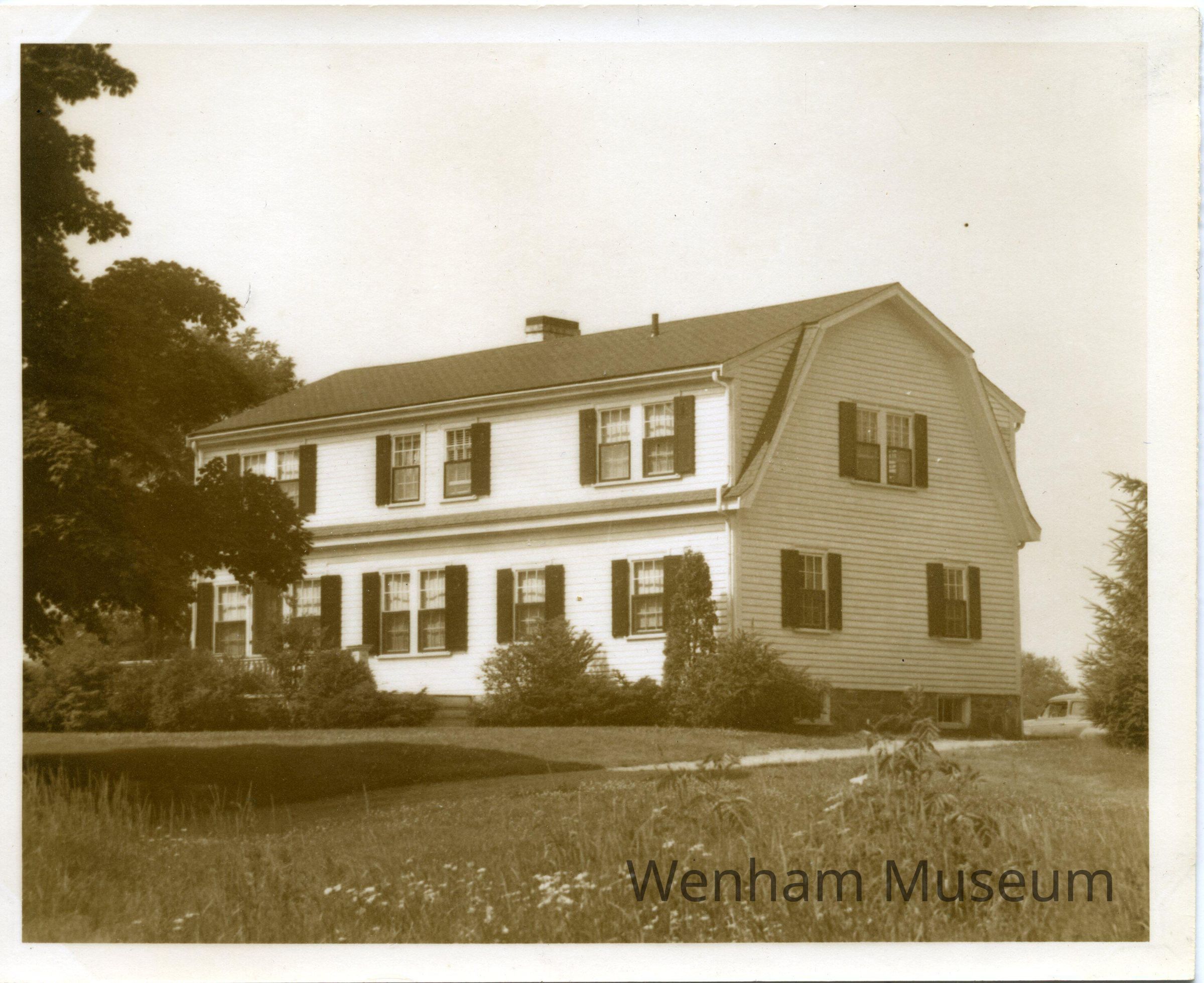 The Bell Family home, 14 Dodges Road, Wenham from photograph album entitled "The / Todd's Own / Book of Wenham" / !943-1946." Album contains 28 sepia colored photographs mounted with gold corner mounts. Photographs include: [Wenham] "Town Hall," "The Church," "The Teahouse," "The School" and family photographs of "The / Todd's / Wenham Friends" and pictures of their homes in Wenham. Families include, "The Arnolds," "The Bells," "The Crehores [family photo missing]," "The Harringtons," "The Jeffers," "The Johnsons," "The Kennards," "The Kraegers," "The Linderoths," "The McKenzies," "The McLaughlins [photo of their home missing]," "The Prahls" and "The Todds."