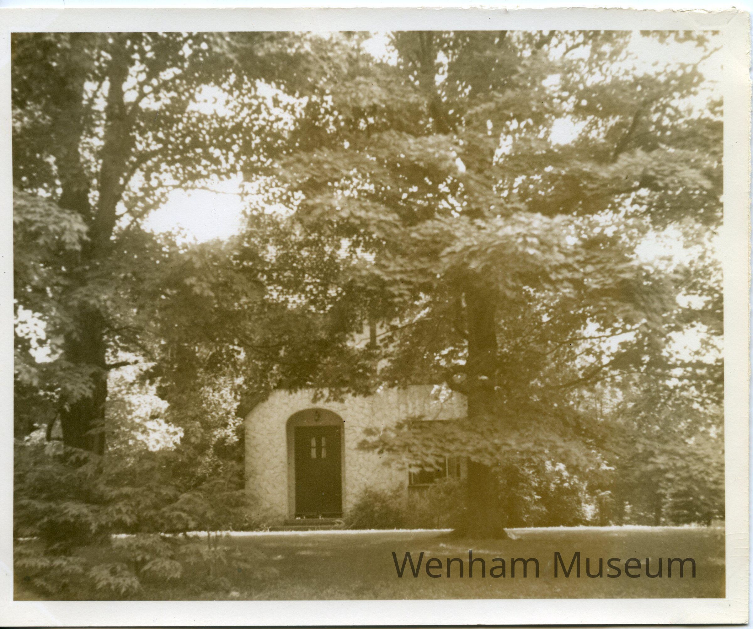 The Kennard Family home, 7 Monument St., Wenham, MA, from photograph album entitled "The / Todd's Own / Book of Wenham" / !943-1946." Album contains 28 sepia colored photographs mounted with gold corner mounts. Photographs include: [Wenham] "Town Hall," "The Church," "The Teahouse," "The School" and family photographs of "The / Todd's / Wenham Friends" and pictures of their homes in Wenham. Families include, "The Arnolds," "The Bells," "The Crehores [family photo missing]," "The Harringtons," "The Jeffers," "The Johnsons," "The Kennards," "The Kraegers," "The Linderoths," "The McKenzies," "The McLaughlins [photo of their home missing]," "The Prahls" and "The Todds."