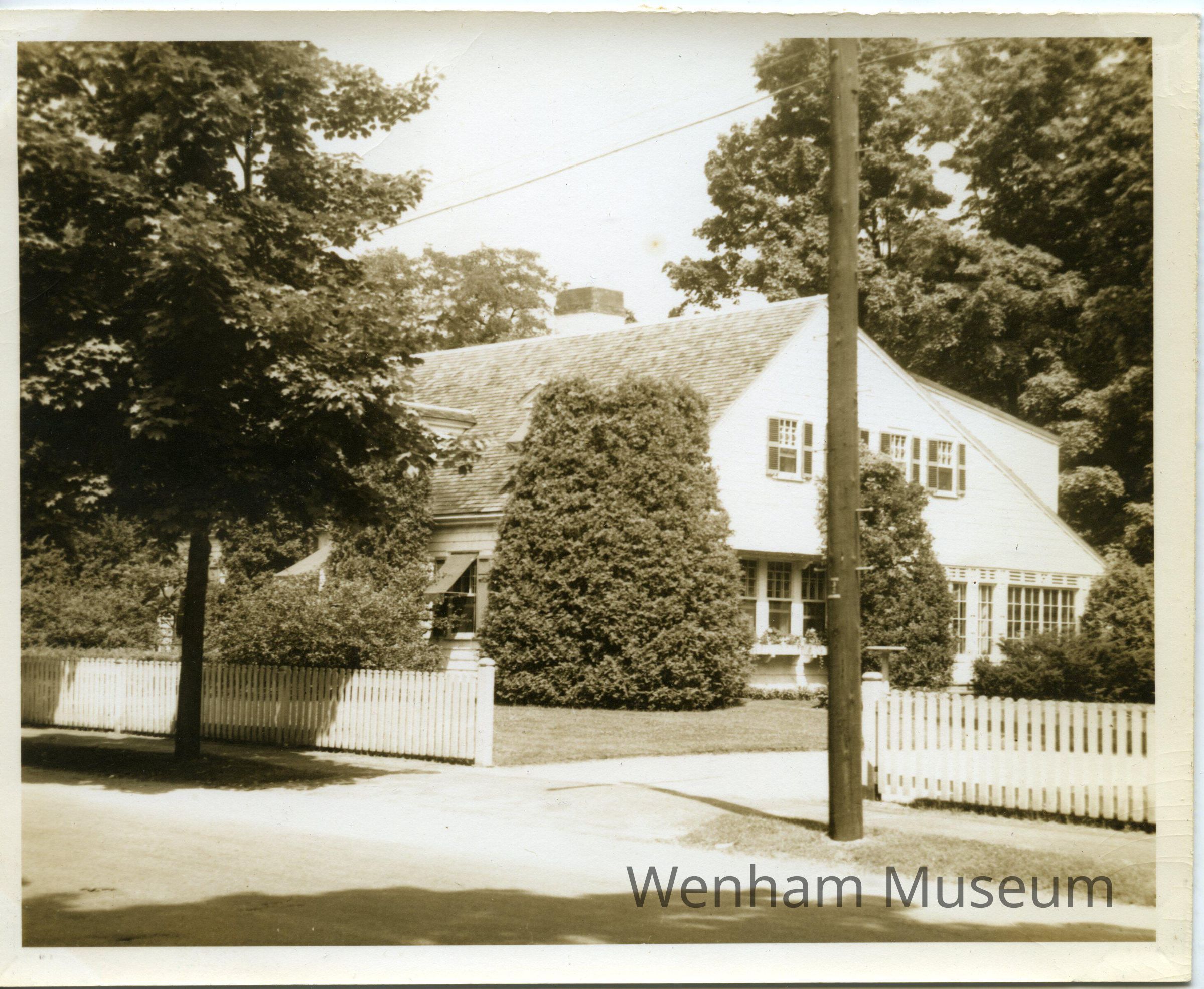 The Wenham Tea House from photograph album entitled "The / Todd's Own / Book of Wenham" / !943-1946." Album contains 28 sepia colored photographs mounted with gold corner mounts. Photographs include: [Wenham] "Town Hall," "The Church," "The Teahouse," "The School" and family photographs of "The / Todd's / Wenham Friends" and pictures of their homes in Wenham. Families include, "The Arnolds," "The Bells," "The Crehores [family photo missing]," "The Harringtons," "The Jeffers," "The Johnsons," "The Kennards," "The Kraegers," "The Linderoths," "The McKenzies," "The McLaughlins [photo of their home missing]," "The Prahls" and "The Todds."
