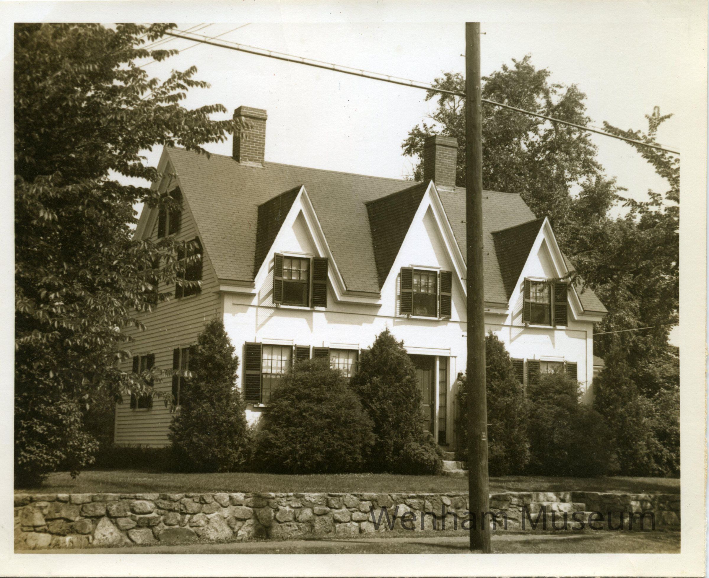 The Johnson Family Home, 163 Main St., Wenham, MA, from photograph album entitled "The / Todd's Own / Book of Wenham" / !943-1946." Album contains 28 sepia colored photographs mounted with gold corner mounts. Photographs include: [Wenham] "Town Hall," "The Church," "The Teahouse," "The School" and family photographs of "The / Todd's / Wenham Friends" and pictures of their homes in Wenham. Families include, "The Arnolds," "The Bells," "The Crehores [family photo missing]," "The Harringtons," "The Jeffers," "The Johnsons," "The Kennards," "The Kraegers," "The Linderoths," "The McKenzies," "The McLaughlins [photo of their home missing]," "The Prahls" and "The Todds."