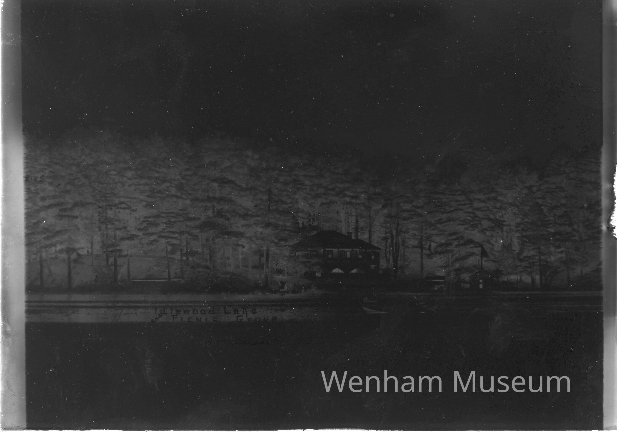 Idlewood Lake Hamilton/Wenham showing the second picnic grove & boat house. Taken by A.B. Norton about 1909.