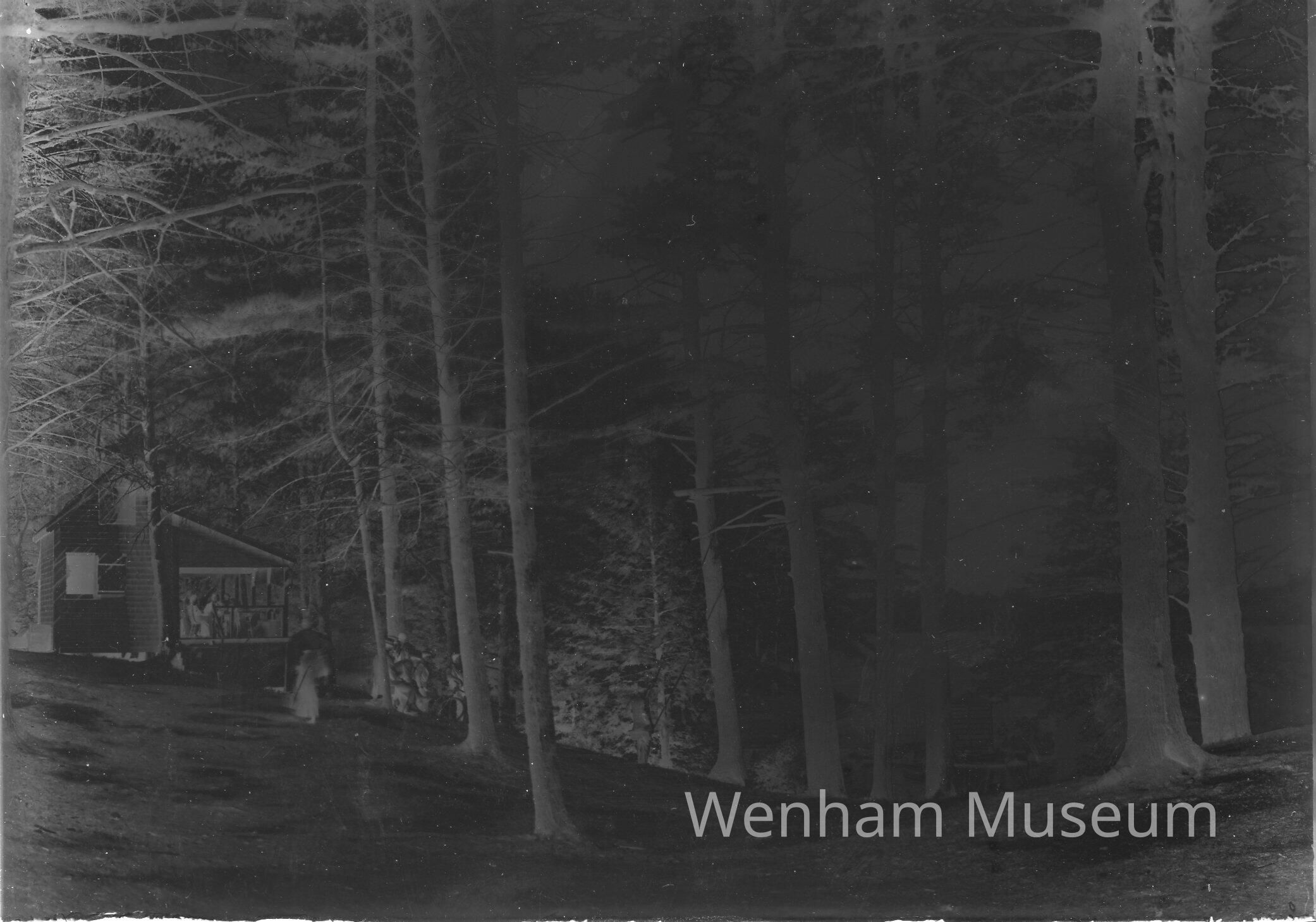 Idlewood Lake, Wenham with a view of the boat landing near the refreshment booth, Asbury Grove. Photo taken by A.B. Norton about 1910.