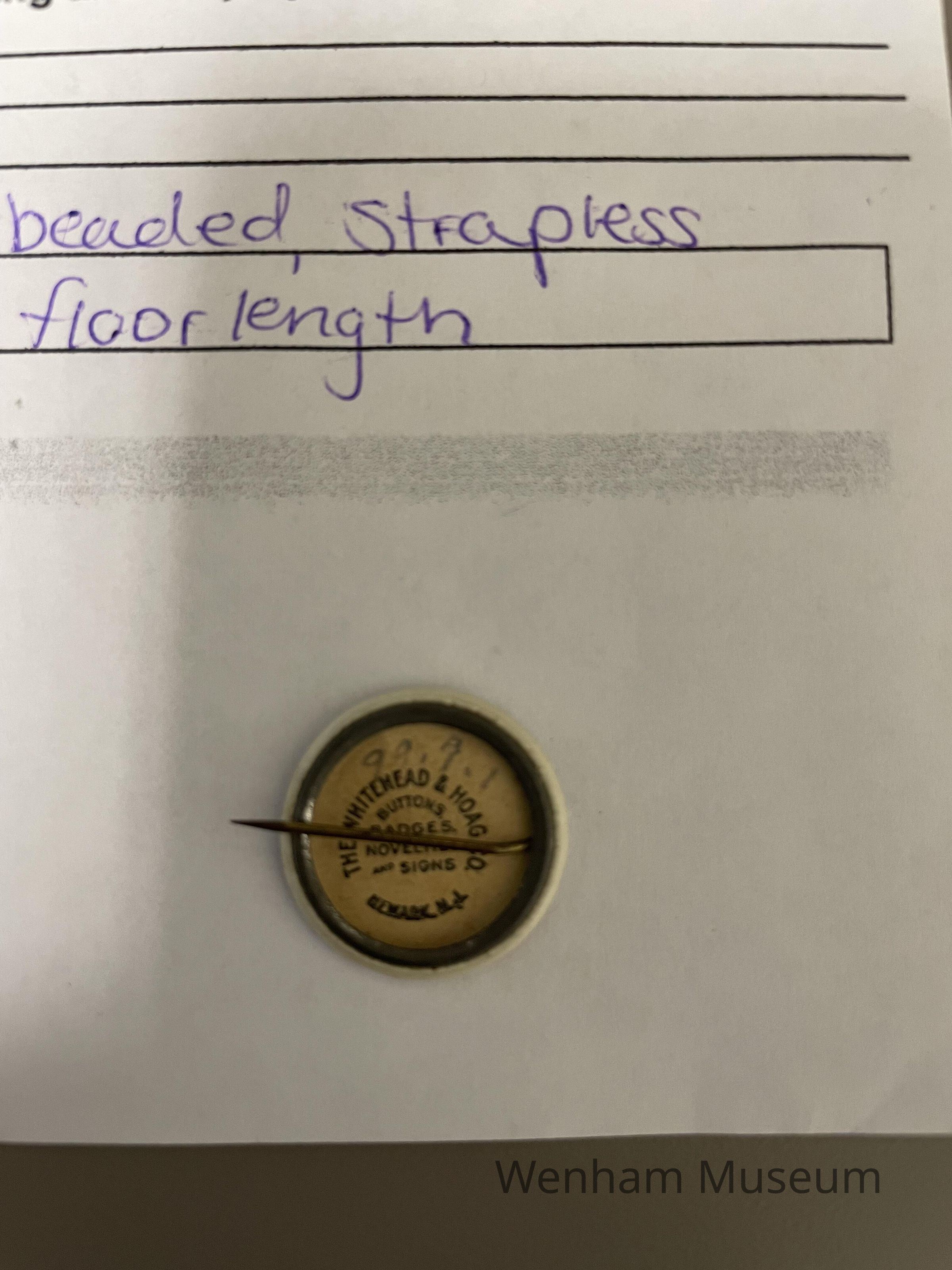 Pinback button with "WENHAM'S NITE BEFORE THE FOURTH" encircled with red, white and blue swag, tied in bow at bottom. The back has ad for "THE WHITEHEAD AND HOAG CO, / BUTTONS/ BADGES/NOVELTIES/and SIGNS/ NEWARK N.J"
