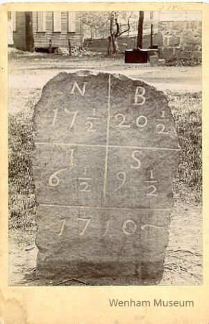 Mile marker in front of Wenham Town Hall