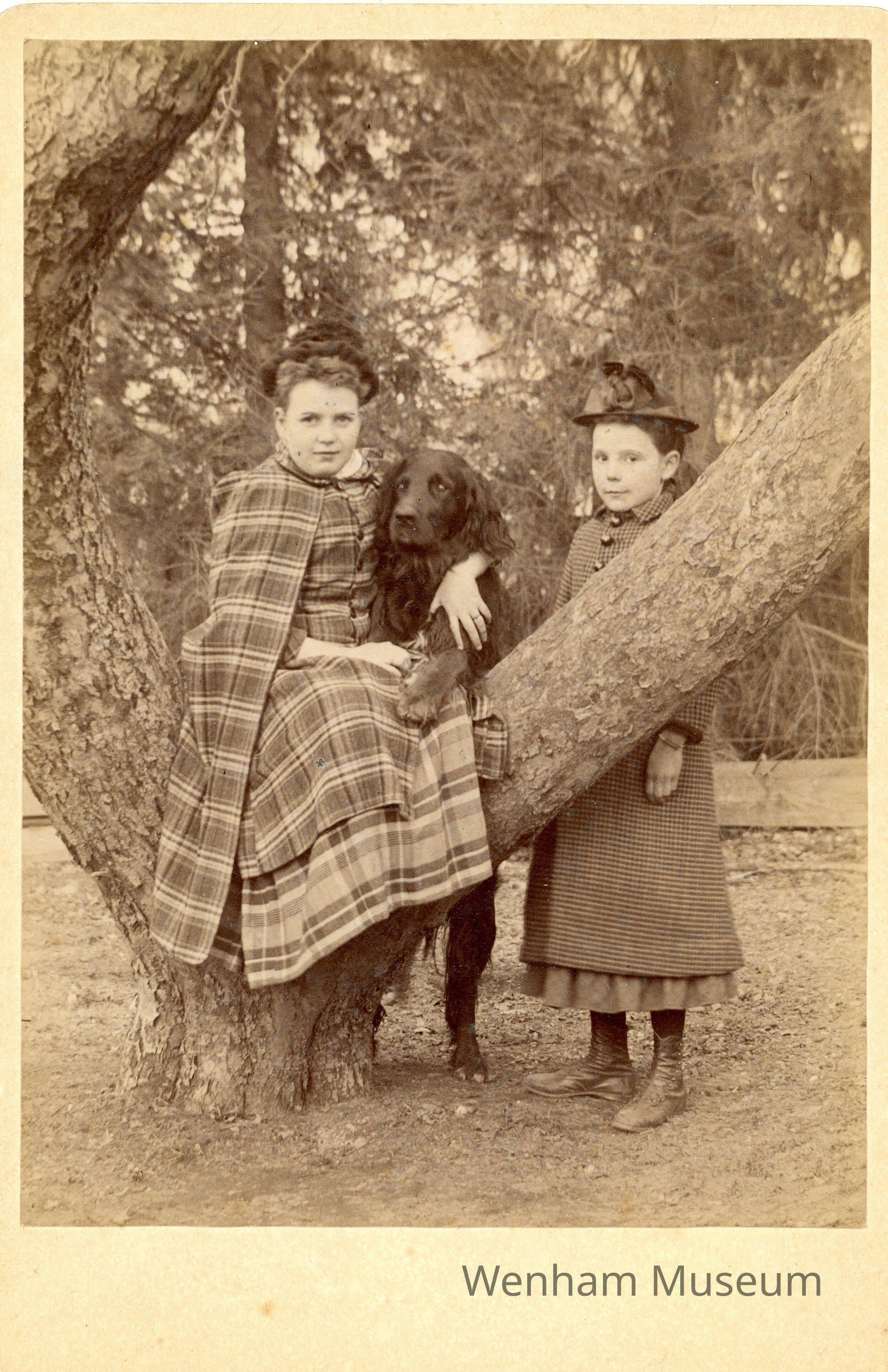 Grace McQueeny and Bessie Pulsifer Card back: "0454/Grace McQueeny/Bessie Pulsifer/Wenham Hist. Assn. & Museum/photo by Conant-yes"