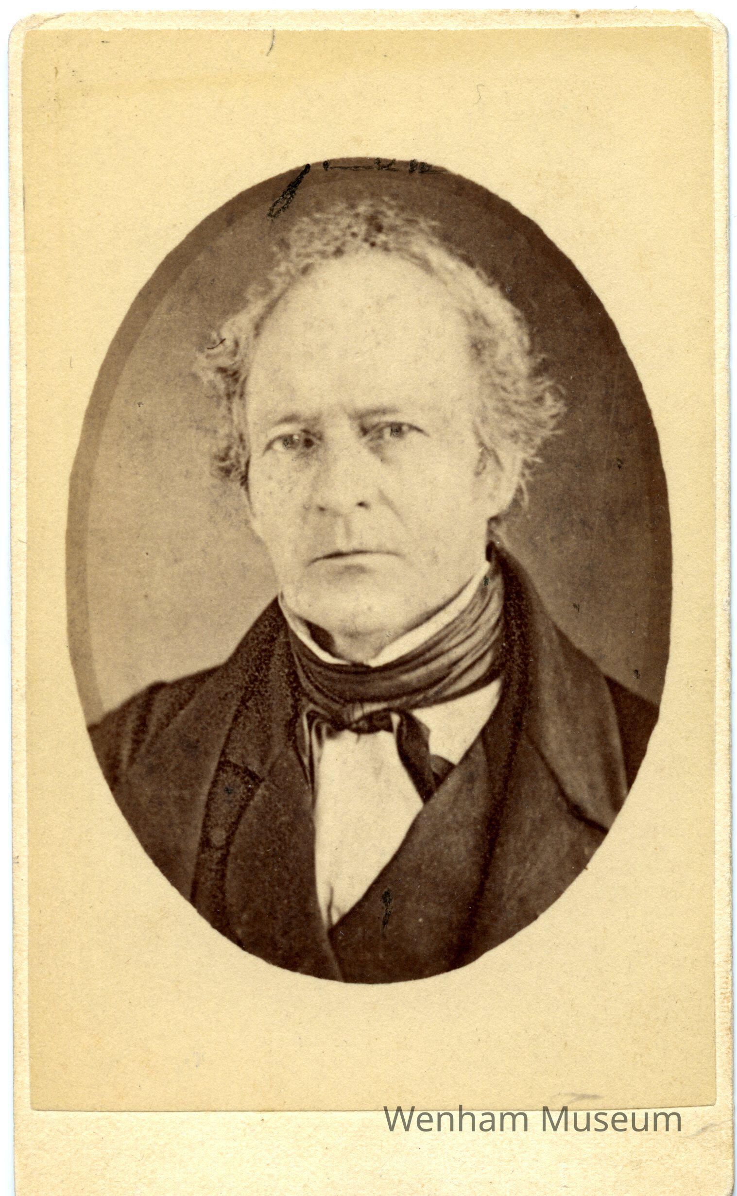Carte-de-Visite of a reverend, identified as "Rev. Ebenezer Peek Sperry / Minister at Wenham Mar. 29 1820 dismissed Apr. 30 1837 / died in [?] Ohio 1853 / during his pastorate 125 persons joined the church / 15 + persons were baptized." Photograph by "Taylor & Preston / 188 Essex St, / Salem, Mass."