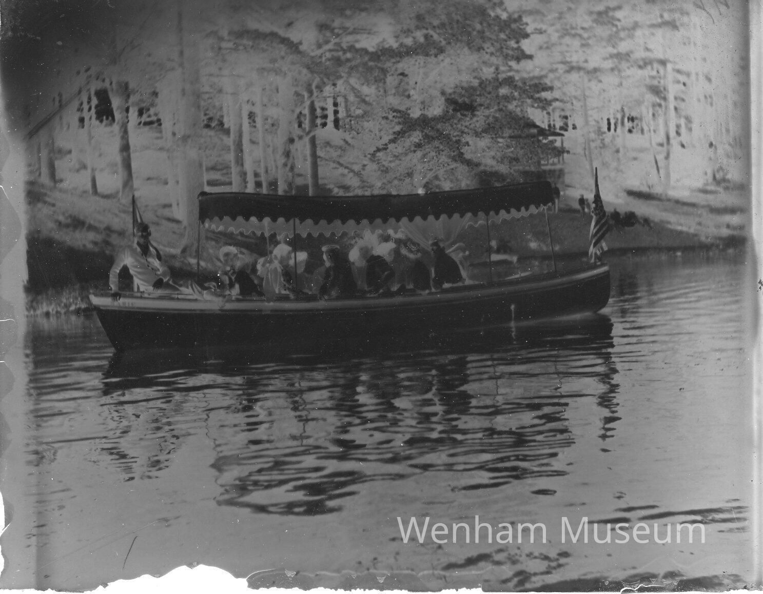 Perkins motor boat at Idlewood Lake, Wenham. Photo taken by A.B. Norton about 1908.