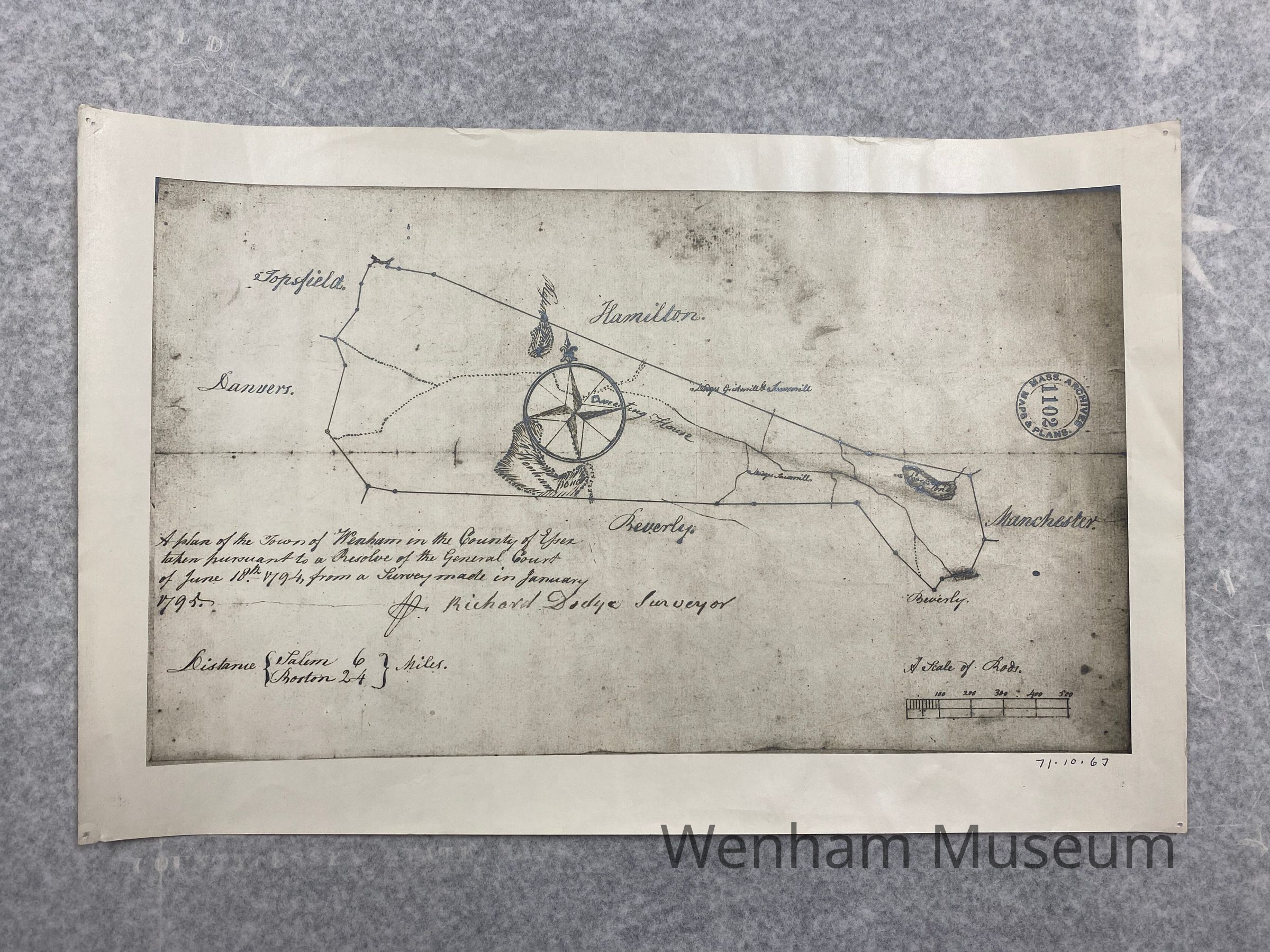 Wenham Map - Massachusetts archives map of Wenham dated 1794. RIchard Dodge, Surveyor