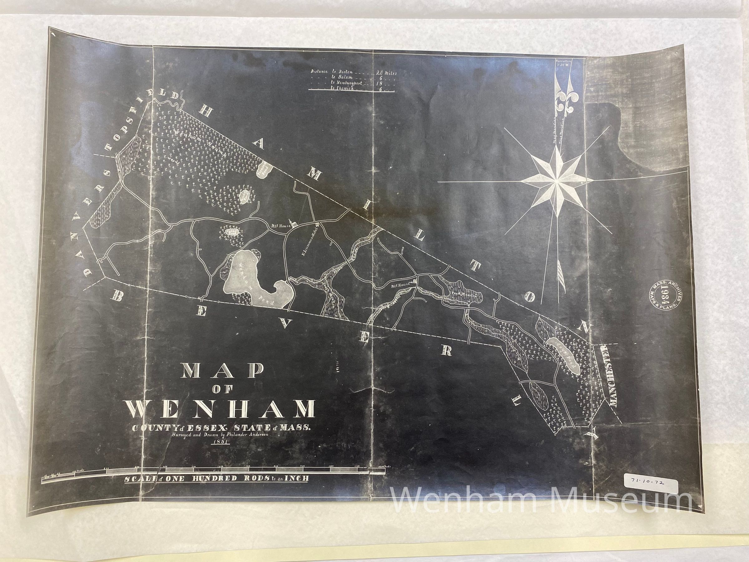 Black print of whole of Wenham surveyed and drawn by Philander Anderson 1831, copy from Mass Archives