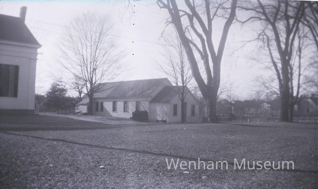 Black and white, medium format film negative frame of the First Church in Wenham. Parish house circa 1650, before the addition to the church. (Printed photograph in file).Collection
