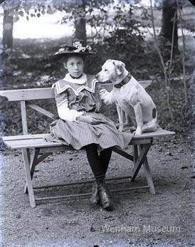 Marion H. Brown on her ninth birthday with a dog