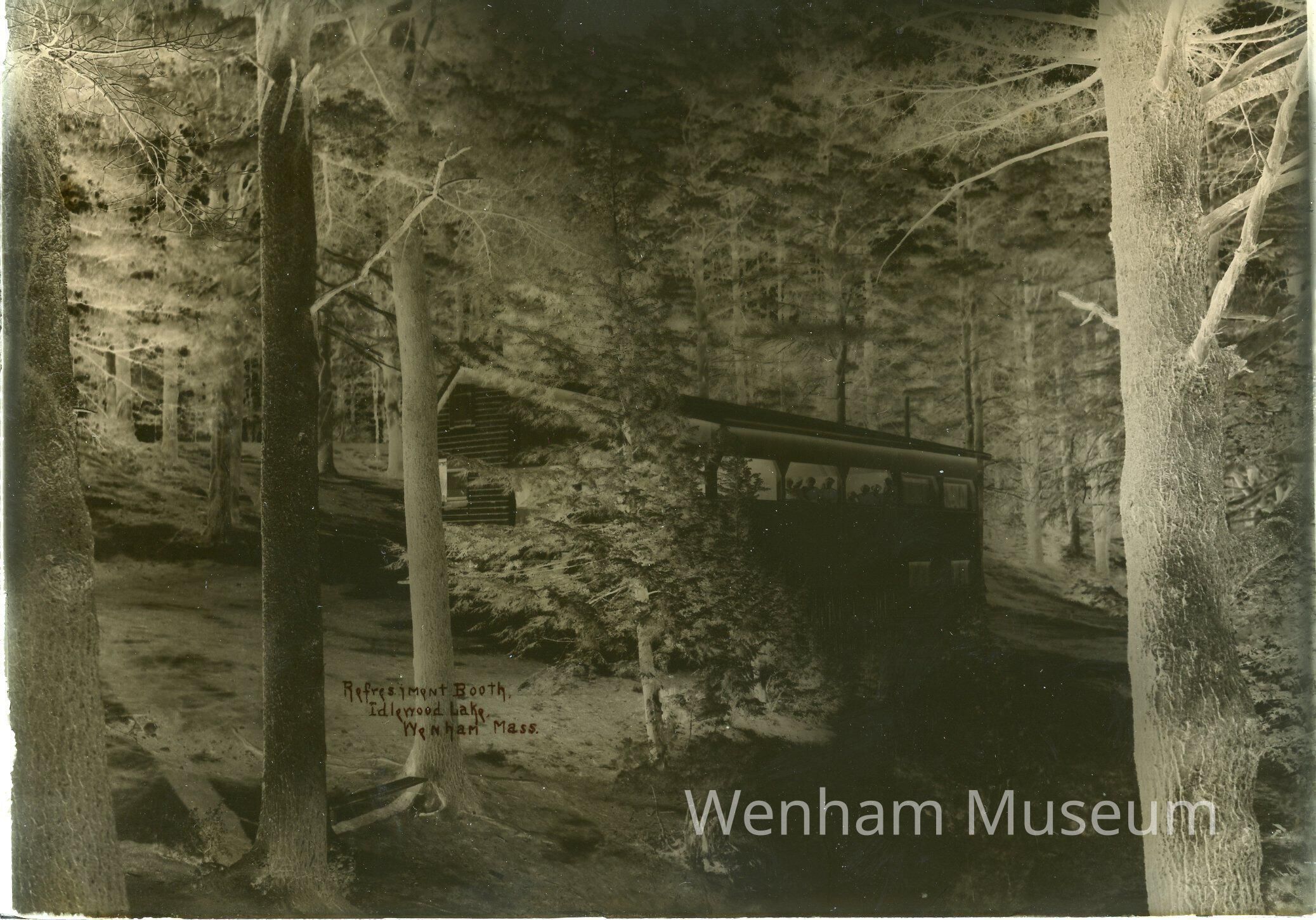 Idlewood Lake (Pond), part of Hamilton and Wenham, refreshment booth taken by A.B. Norton about 1909. SEE NOTE