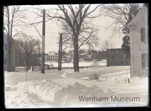 Landscape with snow across Main St. toward Morocco Factory and Friend Ct.