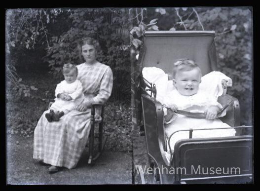 1) Mother & Baby (unidentified) 2) Baby in Carriage (unidentified) duplex