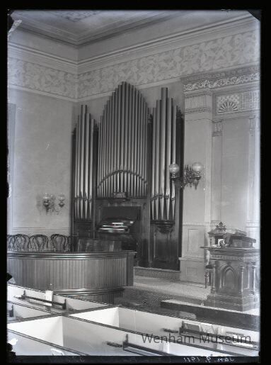 Wenham Congregational Church, interior view with organ, 137 Main St.