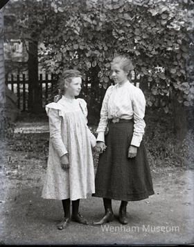 Carrie Lord and Edith Alley standing outside holding hands.