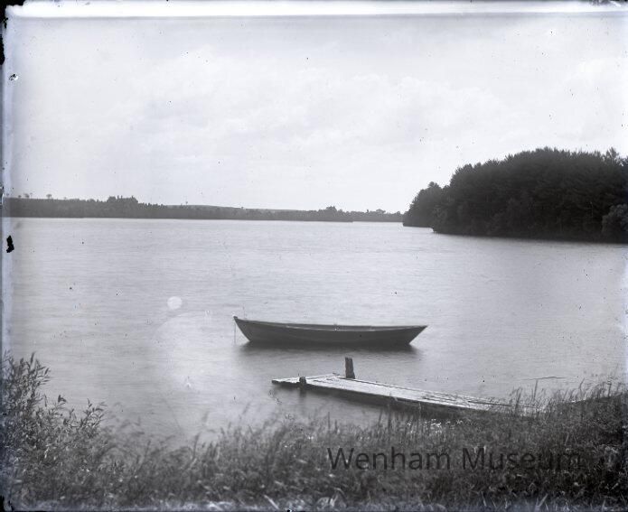 Landscape, Wenham Lake with dock and rowboat, 11:30a.m. (reverse negative)