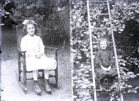 1) Helen Chisholm 2) Mabel Sweeney on a ladder