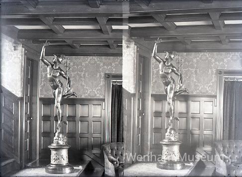 Cunningham-Mandell House, Interior detail, statue of Mercury, duplex, Walnut Rd.