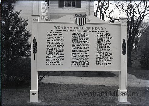 Wenham Town Hall, ext. det., WW I Honor Roll, Main St.