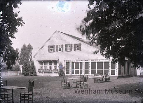 Landscape with new Wenham Tea House, Monument St., back yard with seating *NOTE one of the last known photos taken by Conant, all of the Tea House, all on July 14, 1921Collection