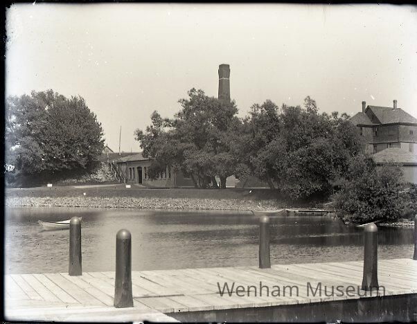 Landscape of Wenham Lake with No. Beverly water works and pumping station