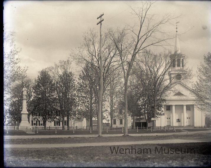 Landscape of Wenham center from Town Hall, Monument Square, Hobbs House (135 Main St.) and Harness Shop anf Congregational Church, 137 Main St.Collection