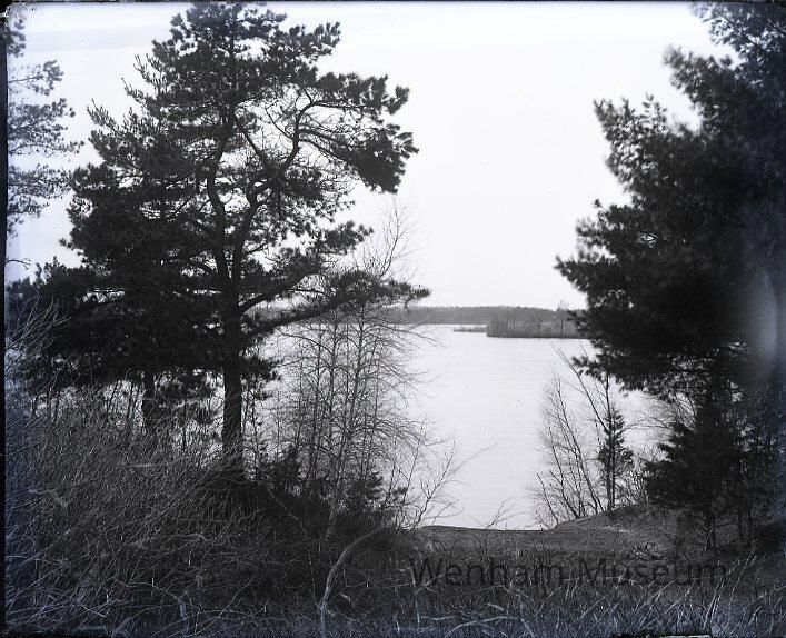 Landscape of Wenham Lake from Main St., near Pond Hill and near Water Cottage