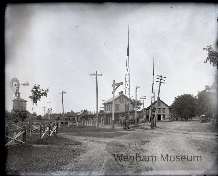 Landscape, Boston & Maine railroad, Wenham Depot,to South, from near gateman's shack