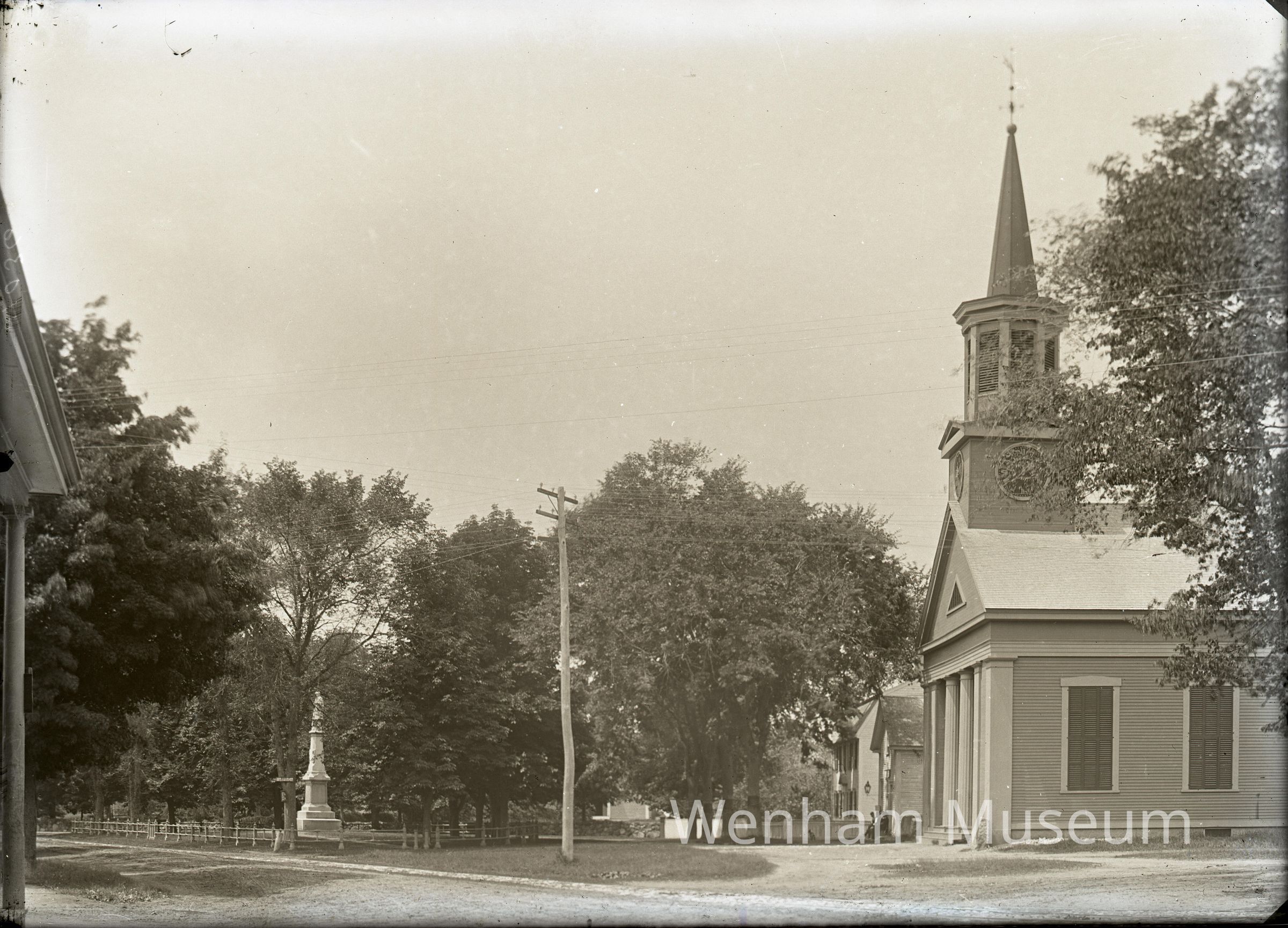 Landscape of of Monument Square with Wenham Congregational Church (137 Main St.) & Soldier's Monument