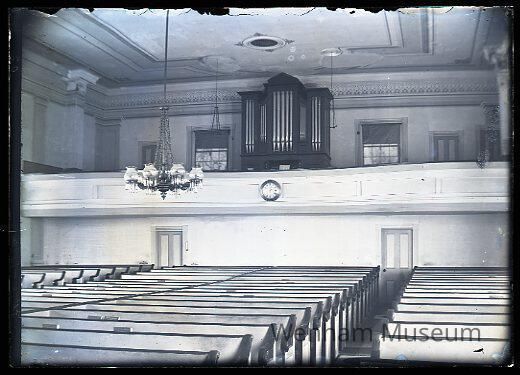 Wenham Congregational Church, interior, general view towards balcony with organ, 137 Main St.