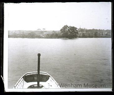 Wenham Lake, view from John Bertram's boat at Salem Water Works showing Moraine Farm and J.C. Phillip's House, copy